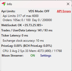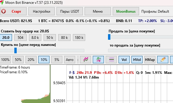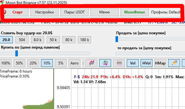Интерфейс можно гибко настраивать под себя: перемещать окна, выбирать цветовые темы, скрывать ненужные блоки и сохранять профили настроек. Это делает Moonbot удобным инструментом как для краткосрочного скальпинга, так и для анализа и торговли по среднесрочным стратегиям.