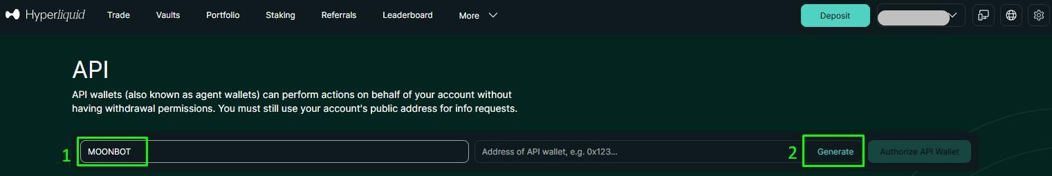 Активация API-ключей в терминале Moonbot для биржи Hyperliquid