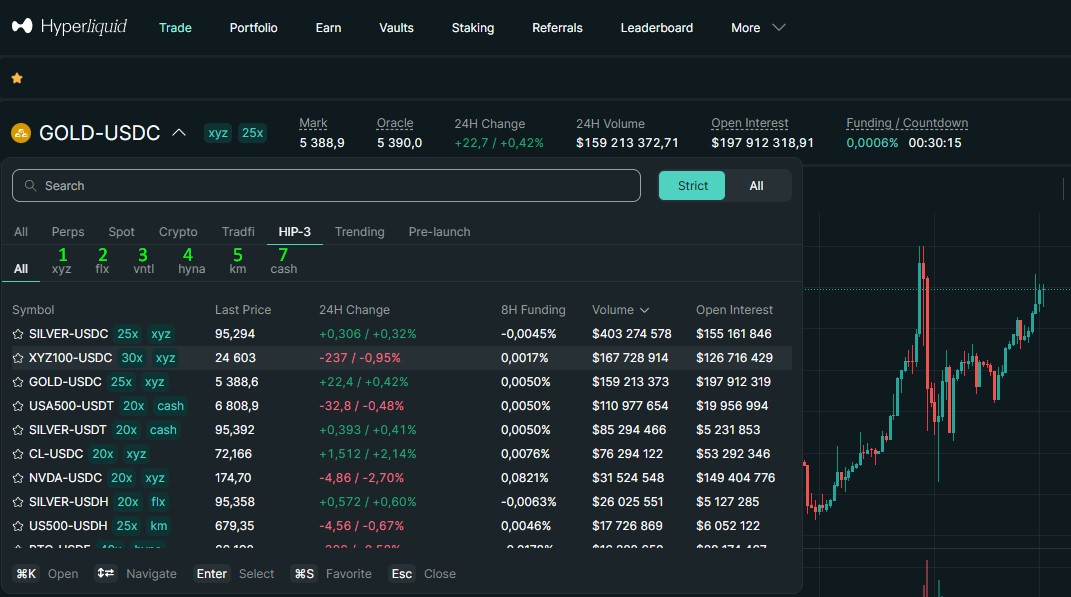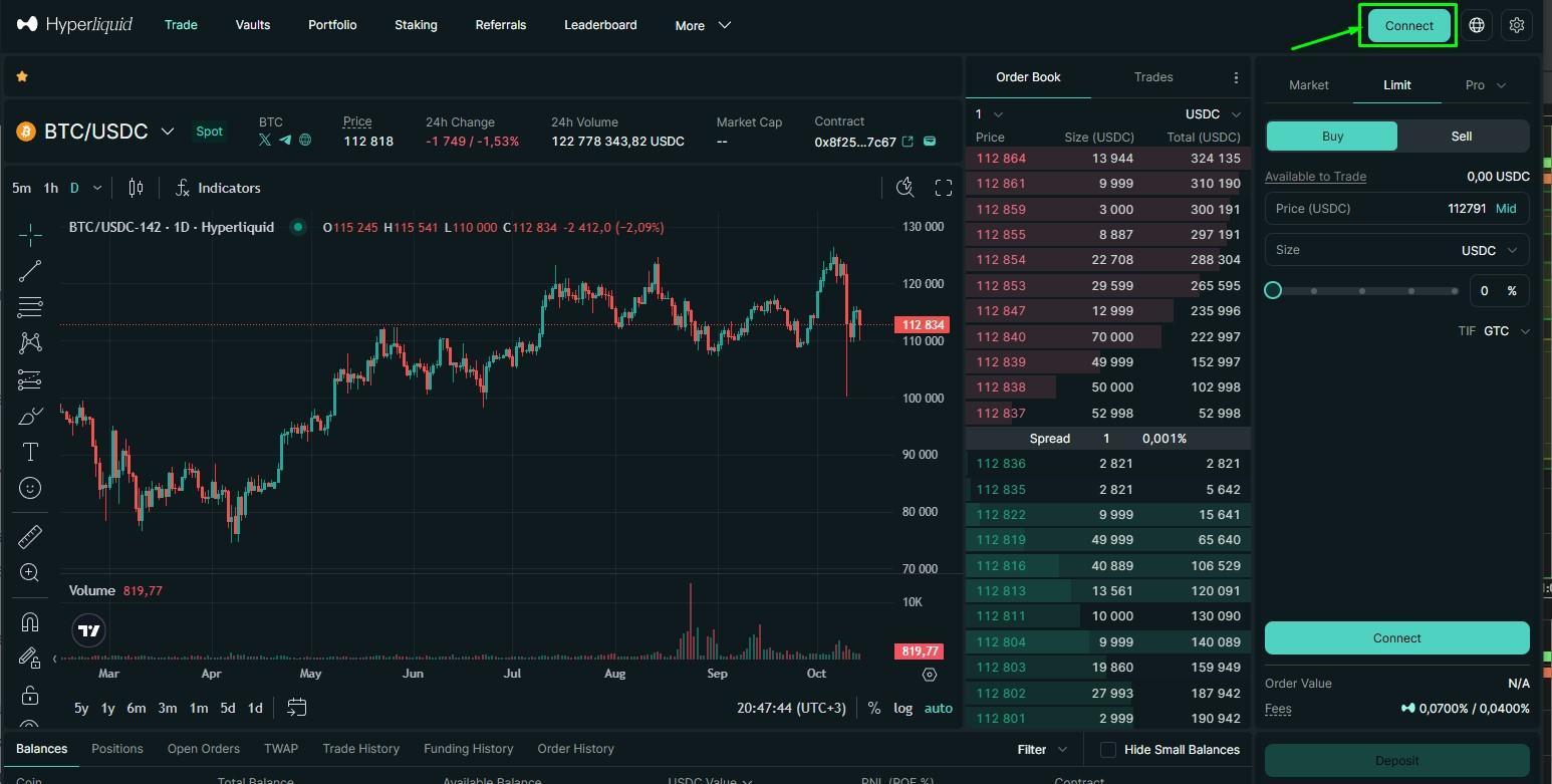 Откройте страницу торговли 🔗https://app.hyperliquid.xyz/trade;