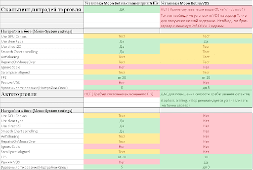 В таблице ниже приведены рекомендуемые параметры для оптимальной работы терминала. Следует учитывать, что оптимальные значения зависят от конфигурации Вашего ПК или характеристик VDS-сервера.