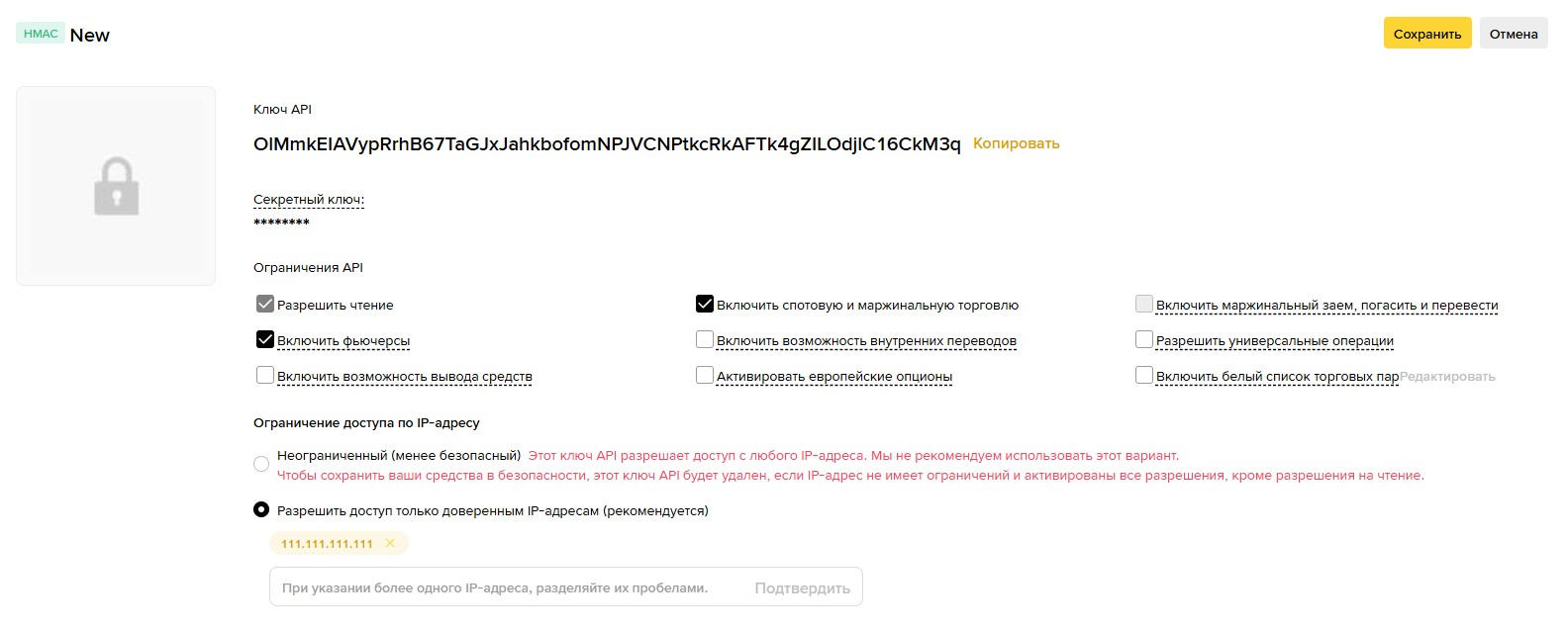 Получение API-ключей на бирже Binance