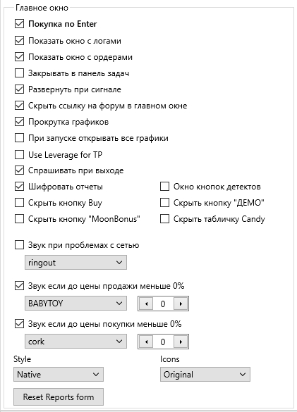 При установленной галочке будет скрыто поле под графиком с ссылкой на форум отзывов о терминале Moonbot 🔗https://bitcointalk.org/index.php?topic=2234198.