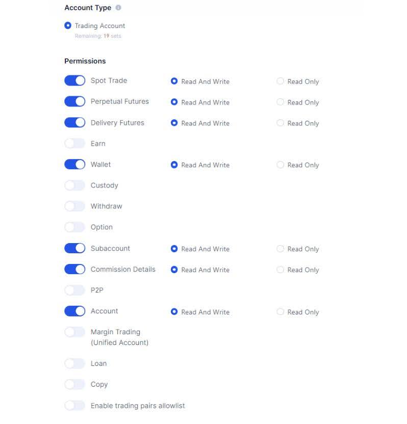 1. Создайте на сайте биржи Gate API ключи для основного аккаунта или субаккаунта