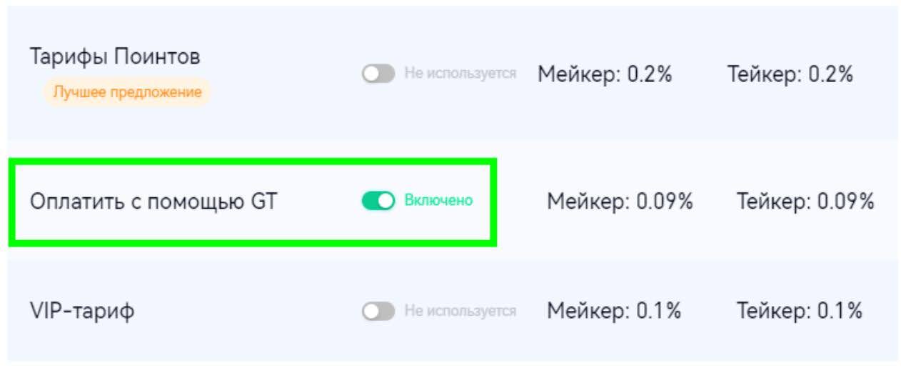 Вначале нужно купить GT, далее перейти в меню → My Fees.