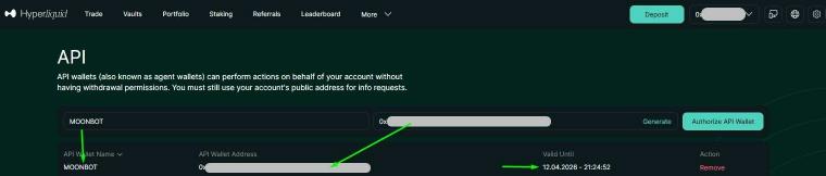 Порядок активации API ключей в терминале Moonbot для биржи Hyperliquid