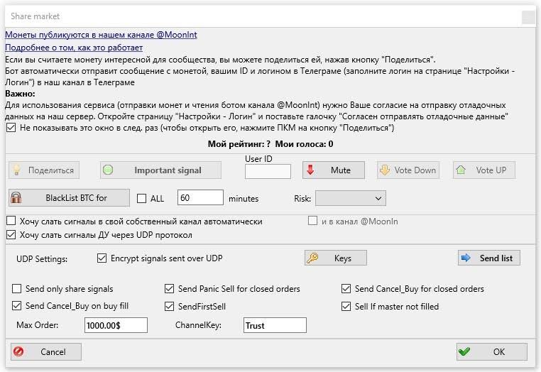 Поэтому мы разработали функционал Доверительного управления через UDP протокол для обмена сигналами между терминалами Moonbot, сводящий задержку к минимуму - этот функционал доступен только в PRO версии.