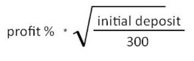 1. A participant with a larger deposit earns more points for the same profit. For example, a trader with a $1500 deposit will receive 2.24 times more points than a trader with a $300 deposit if both generate the same amount of profit.