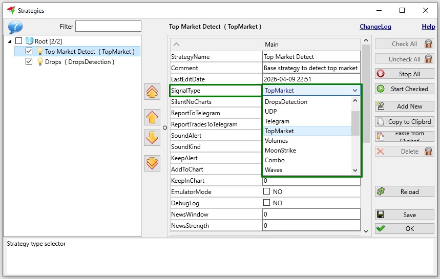 When creating a new strategy, you can select the required option under the SygnalType setting on the Main tab.
