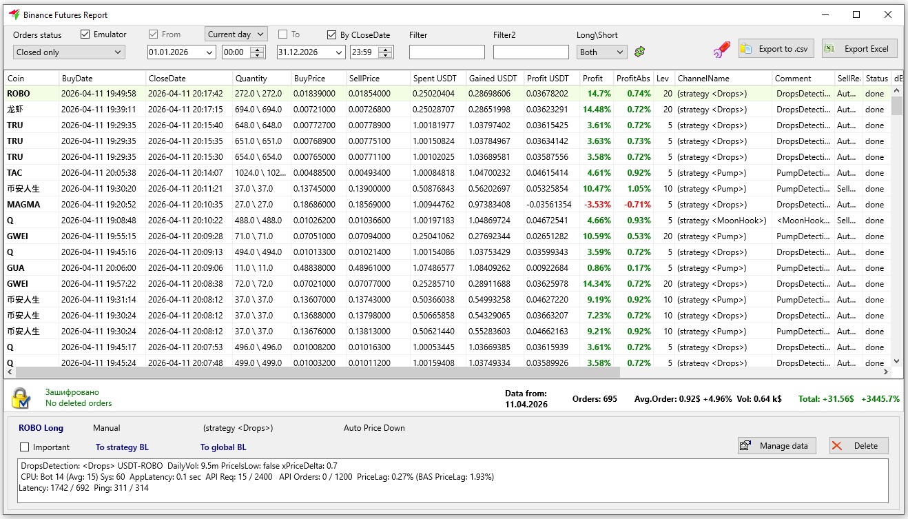 If you are connected to Binance, for example, the window title will display Binance Report. For other exchanges, the title will include their name followed by the word Report. This makes it easy to identify which exchange's report you are viewing.