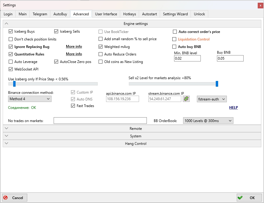 A text message will appear in Telegram for every result (profit or loss), and a screenshot will be sent only if the profit conditions you configured are met (Settings → Advanced → Remote).