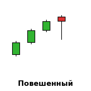 A candlestick with a small body at the top and a long lower shadow (2–3 times longer than the body). Appears at the end of a downtrend and signals a potential upward reversal. The long lower shadow shows that sellers pushed the price down, but buyers managed to bring it back to the opening levels.